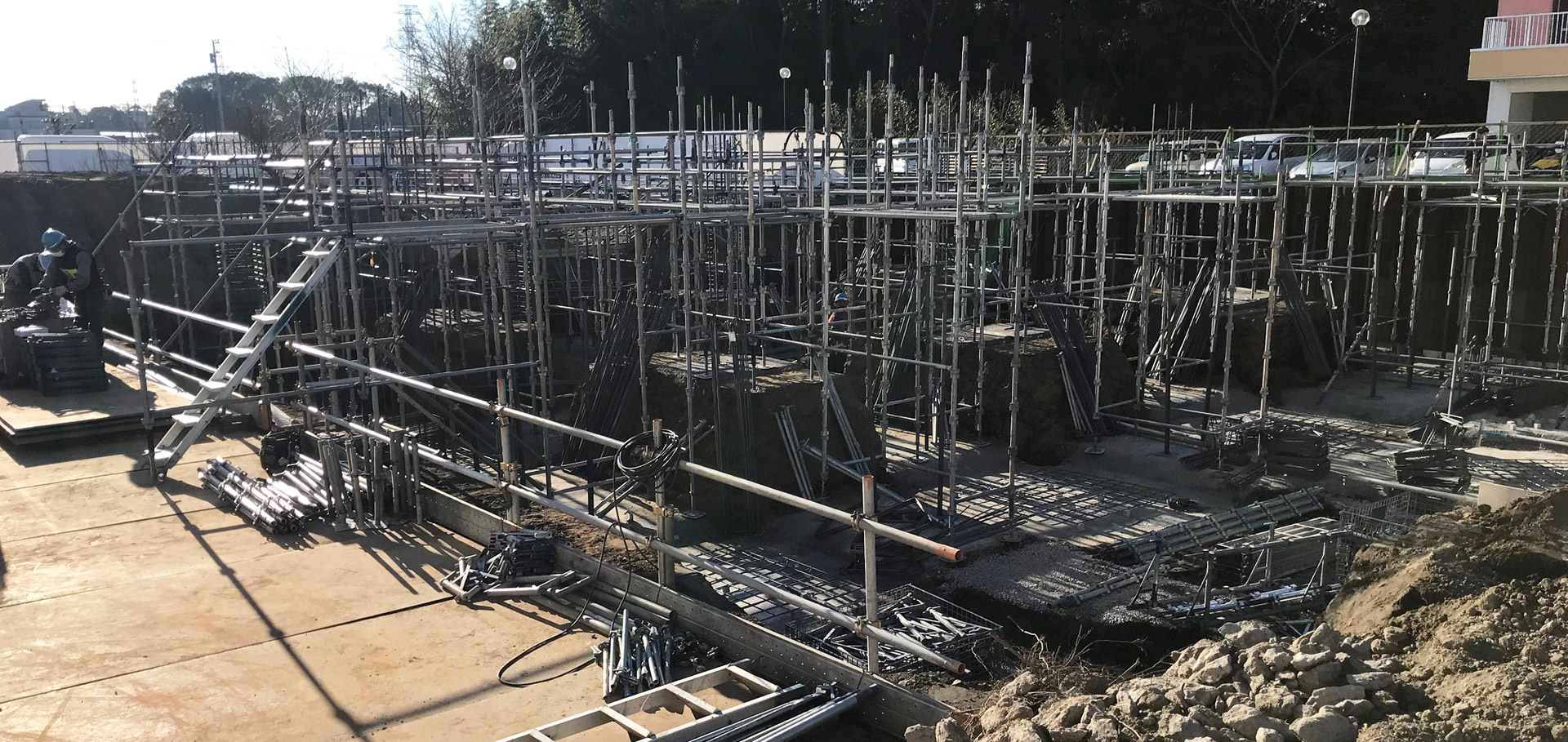 千葉県を拠点に、枠組足場、くさび式足場、単管足場、ステージ足場、建設機械設置、土工工事、コンクリート打設工事、